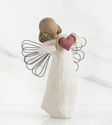 A wedding, anniversary or Valentine’s Day gift that expresses love and caring. 5.5”h hand-painted resin figure with wire wings Standing angel with...