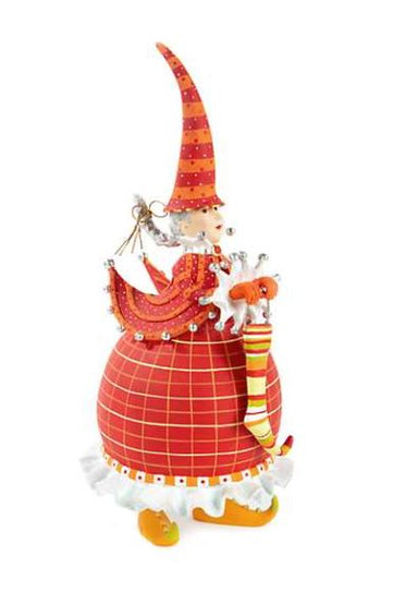 Our Patience Brewster Dash Away Red Mrs. Santa Ornament shows Mrs. Santa with a red plaid bustle to go with her orange and red cap and jacket. (She...