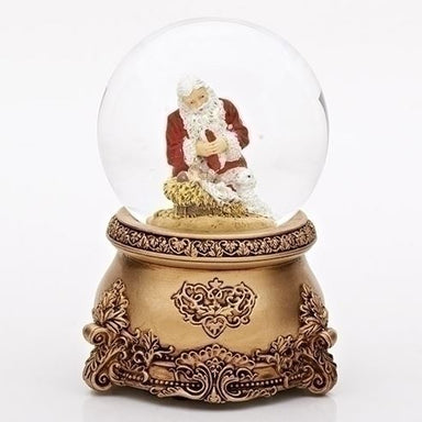 4.5"H MUS KNEELING SANTA W/U GLITTERDOME; 80MM; GOLD BASE Materials: RESIN/GLASS/WATER/METAL Dimensions: 4.5"H Power Type: WIND UP Musical Tune(...