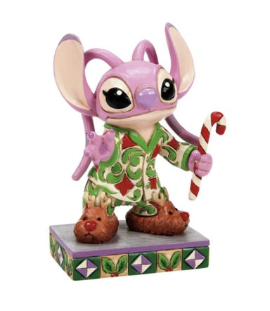 This sweet design by Jim Shore features Angel in festive holiday sleepwear. The pink alien wears rosemale red and green pajamas and reindeer slippe...
