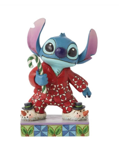 This sweet design by Jim Shore features Stitch in festive holiday sleepwear. The blue alien wears patchwork red pajamas and snowman slippers as he ...