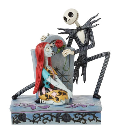 In this enchanting Jim Shore scene, Jack and Sally, the unconventional couple from The Nightmare Before Christmas, share a tender moment in the cem...