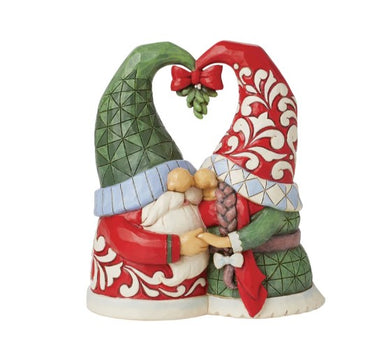 No one knows Gnomes like Jim Shore. This sweet gnome couple hold hands and kiss under mistletoe hung between their connected hats. The pair match ...