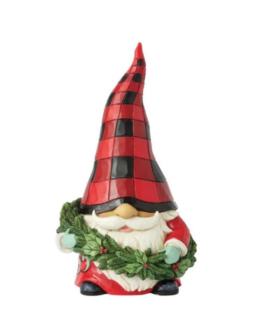 This enchanting Jim Shore Highland Glen gnome resembles a miniature Santa, with his white beard a red attire, complete with a cozy buffalo plaid ha...