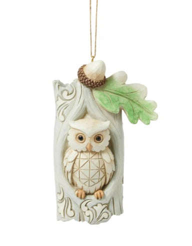 This delightful Jim Shore ornament features a charming owl nestled comfortably in the hole of an acorn tree, capturing the serenity of woodland lif...