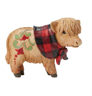 This charming Jim Shore Highland Glen piece features a delightful Highland cow in a cozy buffalo plaid scarf with red and green floral details on i...