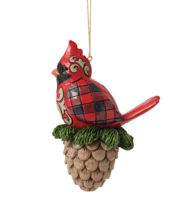 This delightful Jim Shore Highland Glen ornament features a vibrant cardinal adorned with buffalo plaid wings and intricate green rosemaling. Perch...