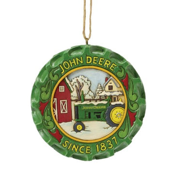 Celebrate the season with this Jim Shore ornament featuring a festive holiday wreath inscribed with "John Deere." The wreath beautifully frames a c...