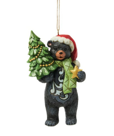 This charming Christmas at the Lodge Jim Shore ornament features a black bear holding a miniature decorated Christmas tree, ready to add woodland w...