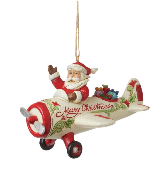 - Jim Shore Heartwood Creek Santa In Airplane Hanging Ornament