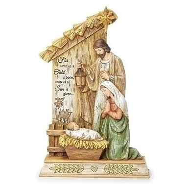 $74.99 CAD| /10.25"H HOLY FAMILY UNDER STAR VERSE ON WALL Materials RESIN Dimensions 10.25"H
