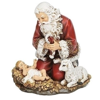 $59.99 CAD| /5"H KNEELING SANTA HOLDING HAT W/BABY & LAMB FIGURE Materials POLYRESIN Dimensions 5"H 5"W 3.75"L