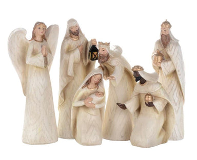 $139.99 CAD| /‘Behold the awe and wonder of the Christmas Story’ Six hand-painted resin figures, tallest being 9.5”h. Includes Mary, Joseph, shepherd, donkey and...