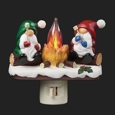 4"H GNOMES BY CAMPFIRE NIGHT LIGHT; FLICKER BULB; SWIVEL PLUG Materials RESIN Dimensions 4"H 2"W 4.5"L Power Type PLUG-IN