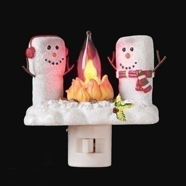 4.5"H RUDOLPH CAMPFIRE NIGHT LIGHT W/ELF & TOY FLICKER BULBMaterials: RESINDimensions: 4.5"H 4.25"W 3.5"DPower Type: PLUG-IN