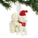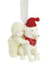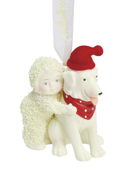 Snowbaby's best friend! A Snowbaby wraps his arm around his furry friend in a warm embrace. The smiling pup wears a polka dot kerchief and a festive snow cap. This 2.75" porcelain figurine is finished with hand-painted accents.
