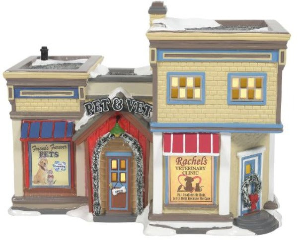 A couple of new businesses have come to The Original Snow Village. The Pet Shop is conveniently located right next door to Rachel's Veterinary Clinic. Friendly signs and separate entrances complete this Main Street shop.