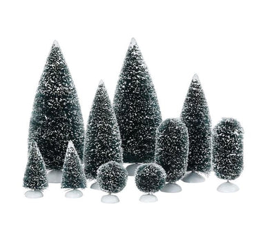 A set of six trees in 12", 9.5" and 7" sizes that bend to your needs. Use Department 56 Cross Product accessories to enhance your Village display...