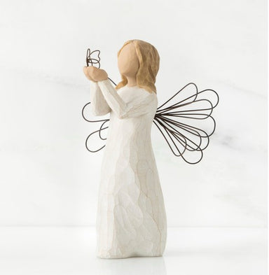 A wedding, anniversary or Valentine’s Day gift that expresses love and caring. 5.5”h hand-painted resin figure with wire wings Standing angel with...