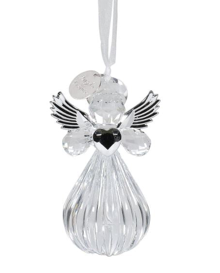 Acrylic Angel Holding a silver plated heart. Includes a silver charm and poem card.