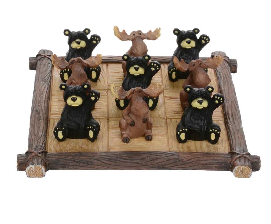 These Black Bears and Moose tic-tac-toe it out on their own game board all made of cast resin. Perfect gift for the cottage, cabin or lodge or as a rainy day game or something to play with grandparents. Delights all ages!