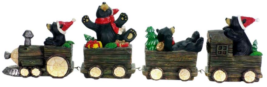 This charming little resin train load of black bears measures 13cmX7cmX10cm.