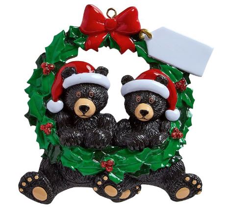 Black Bears Couple in Wreath Personalized Ornament