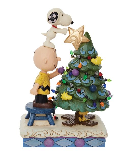 The holidays are all about spending time with the people (and pets) we love most, and that's exactly what Charlie Brown plans to do. Decorating a lovely Christmas tree, Snoopy get a lift from Charlie to place the star in this charming Jim Shore piece.