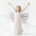 - Standing angel in cream dress with wire wings, with both arms upraised