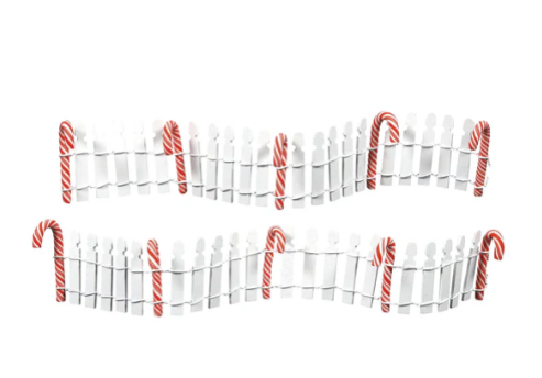 New for 2024, we've updated our classic picket fence to timeless white studded with meticulous peppermint canes throughout.