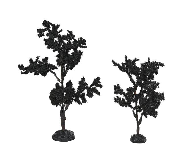 A tree that has captured black clouds seems like a perfect addition to make your Halloween Village display a little more spooky. The set of 2 features a 6" and a 9" tree.
