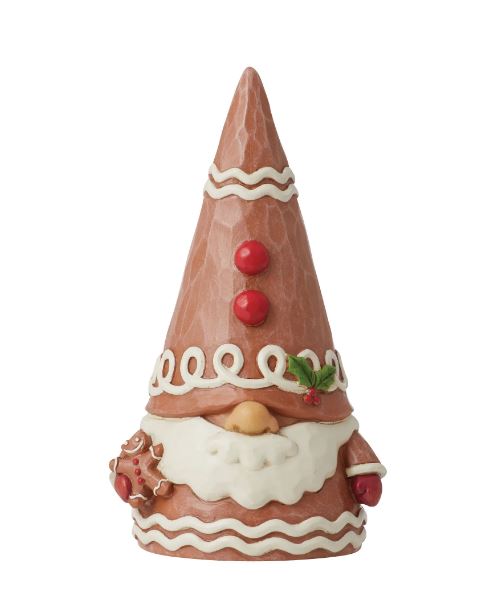 No one knows gnomes like Jim Shore! Jim puts a playful spin on Christmas. This holiday gnome is dressed in gingerbread. With icing details and gumdrops, he is a sugary sweet collectible with cookie in hand.