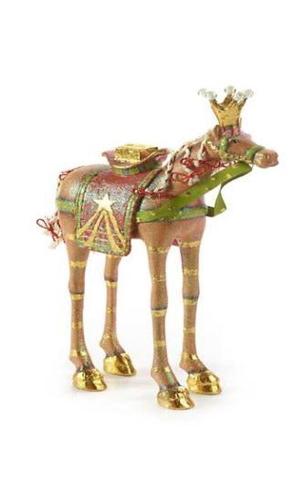 Celebrate the spirit of Christmas with the Nativity collection from Patience Brewster by MacKenzie-Childs. An ever-expanding group of handmade and hand-painted figures tells the story of the first Christmas in a colorful and captivating way. The Patience Brewster Nativity Golda the Horse Figure brings the Magi Melchior to the Nativity scene. Golda has a gold-leafed crown, polished hooves, and carries the sacred gift of gold.
