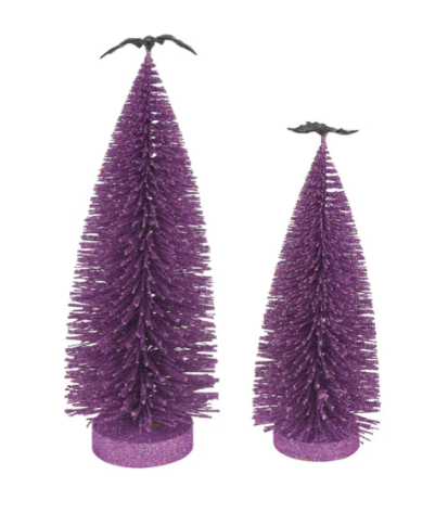 With purple glitter and bat accents, this set of 2 trees are the perfect spooky addition to your Village displays.