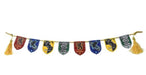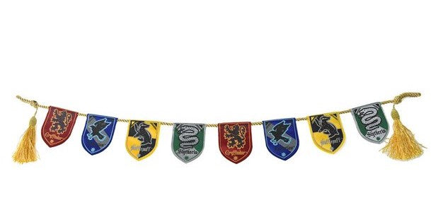 Harry Potter house shield banner garland. The Shields of Gryffindor, Hufflepuff, Slytherin and Ravenclaw are represented in this garland.