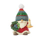 This festive Jim Shore gnome brings holiday warmth with a burning candle in hand, his cap with yarn Pompom, pulled over his eyes in playful fashion. Dressed in a floral-detailed coat and textured hat, he holds a wreath, ready to deck the halls.
