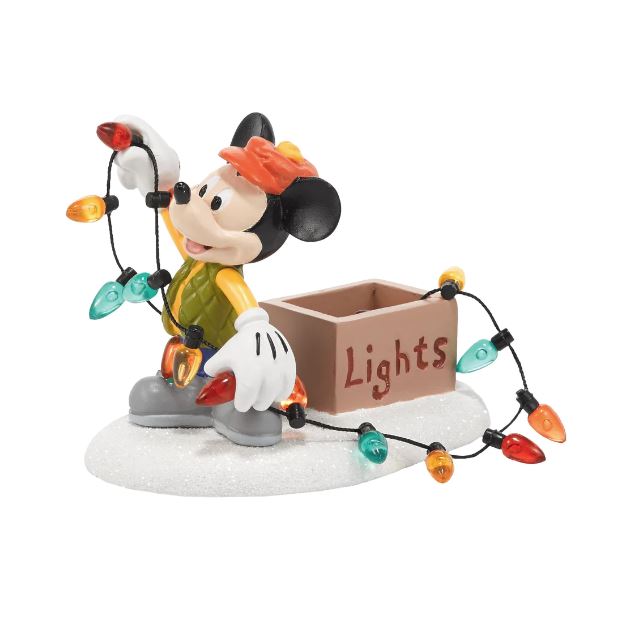 Dressed in his work clothes, Mickey is ready to string his lights for the holidays.