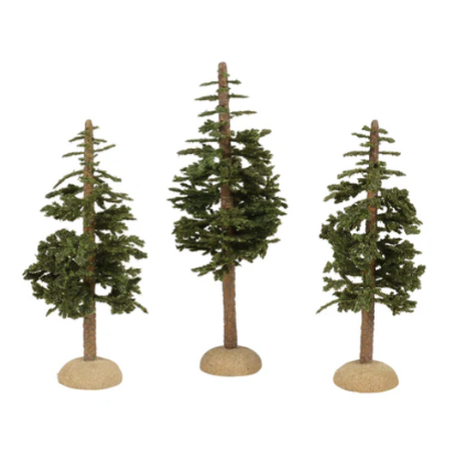 One of the most widespread pines spanning the Midwest to the Southwest, our new Ponderosa Pines feature sand bases and no snow, offering versatility for your Village displays. Set of 3.
