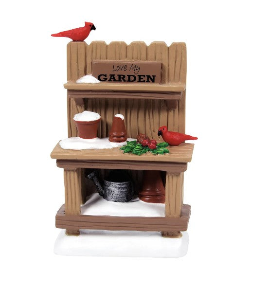 Even in winter, cardinals visit the potter's bench in hopes of finding scattered seed.