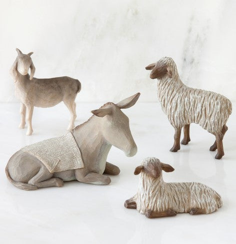 - Created for Willow Tree® The Holy Family collection. Four animals, tallest is 3”h. Includes donkey, goat and two sheep