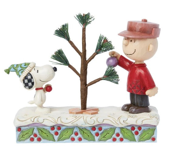 This iconic Jim Shore creation shares a memorable scene from "A Charlie Brown Christmas" special. Charlie picked out a small sampling with hardly any branches, nevertheless, the Peanuts gang came together to decorate it into something wonderful.