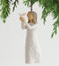 - Figure in cream dress, holding white dove on extended arms. Hook and loop affixed to figure's head