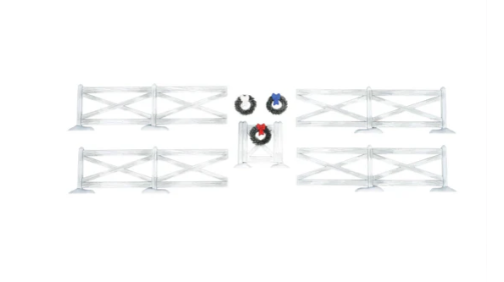 Style meets function in our crossbuck fencing set designed to elevate the aesthetic of your Village display. Crafted of metal, this weighty fence set includes 4 long segments and 1 gate plus 3 different sisal wreaths to choose from.