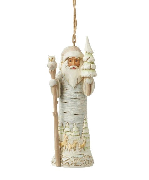 - Jim Shore Heartwood Creek White Woodland Collection Birch Bark Santa Ornament